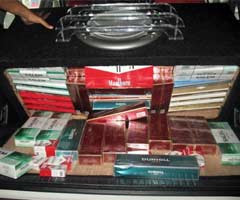 A total of 100 cartons of duty-unpaid cigarettes was found hidden in the vehicle. The man was arrested and his vehicle seized.